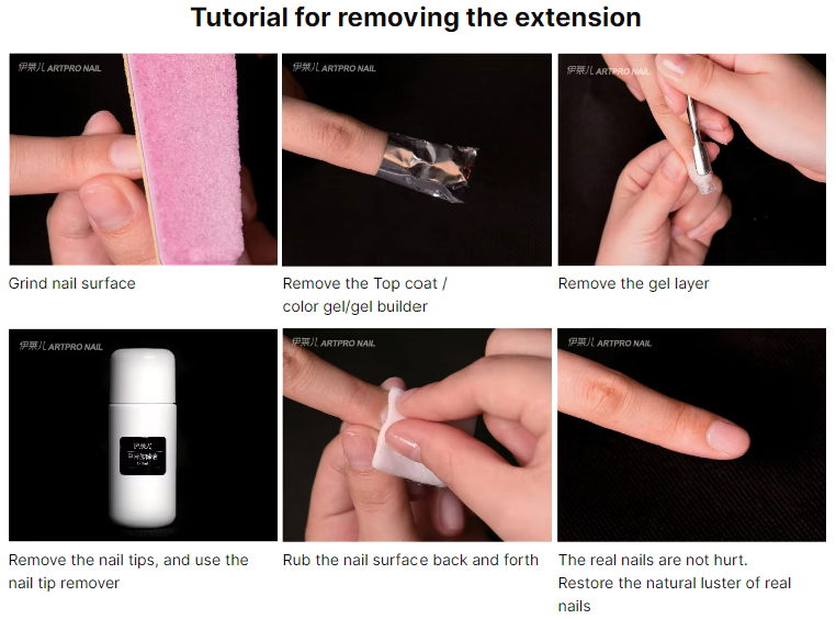 Get the extension gone within 3 minutes without grinding ▪ Manage it in five minutes ▪ Removing it by smearing ▪ without hurting the real nails